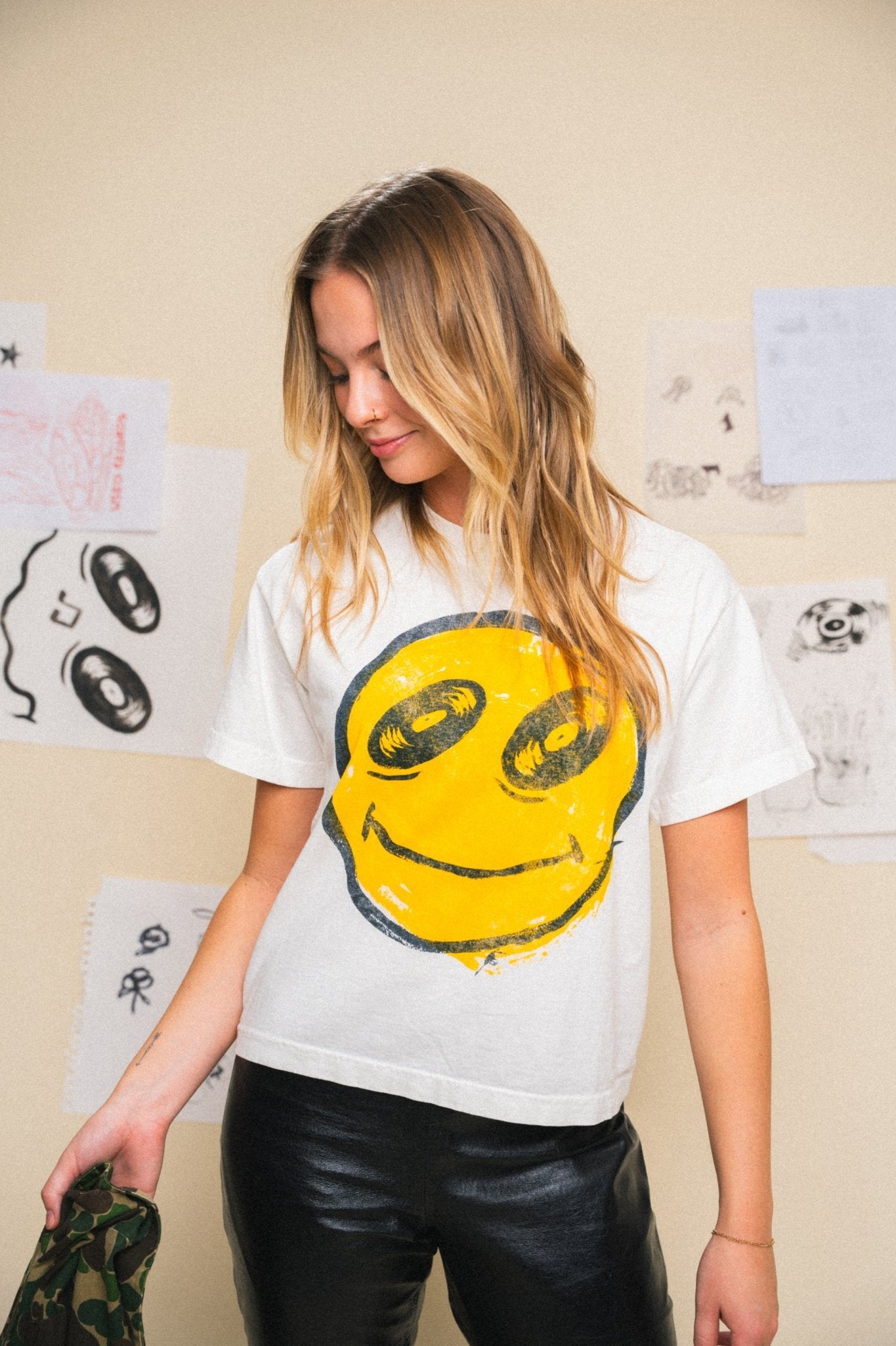 Created as a simple expression with a nod to music. Printed on a 6.5 oz cotton tee with a classic women’s fit and durable construction. Designed from hand-drawn artwork created by Hailey. Screen-printed in Nashville on garments made in Los Angeles.
